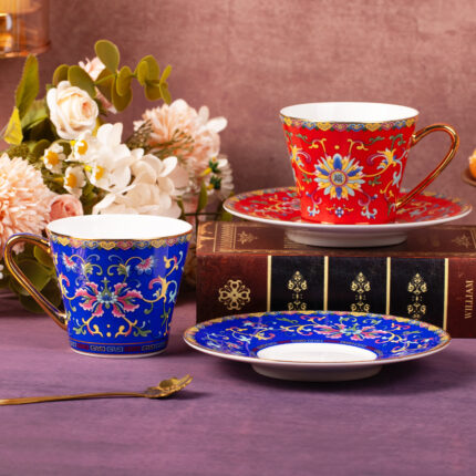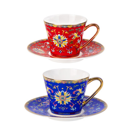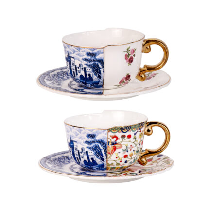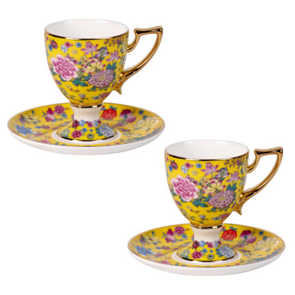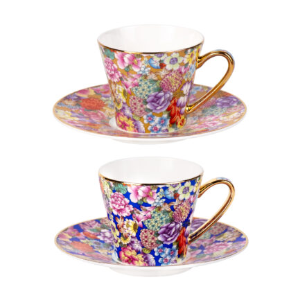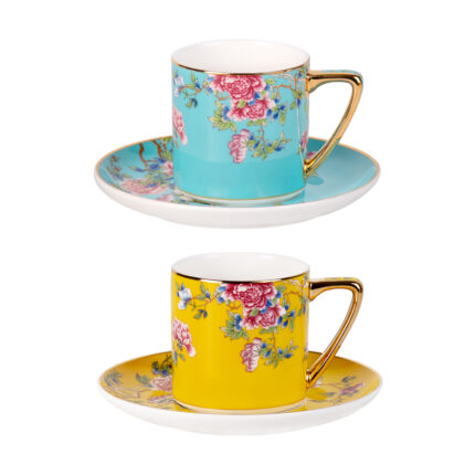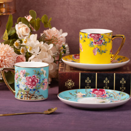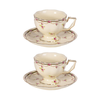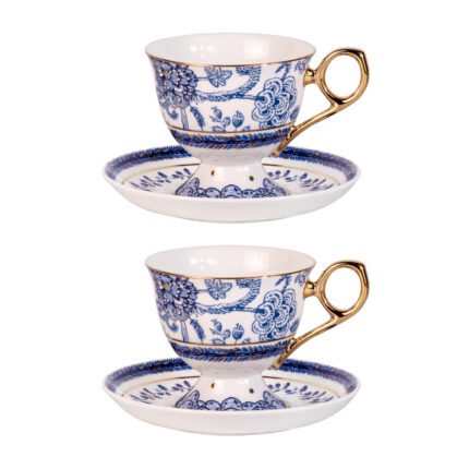 Tea Cups and Saucers Set of 2 Porcelain Coffee Cup